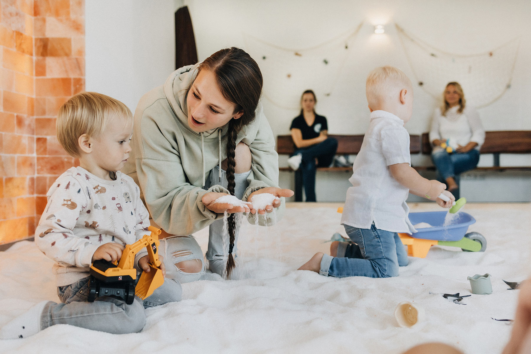 Eine Sitzung im Salzraum dauert in der Regel 45 Minuten. Genug Zeit zum Spielen, Durchatmen und Entspannen.